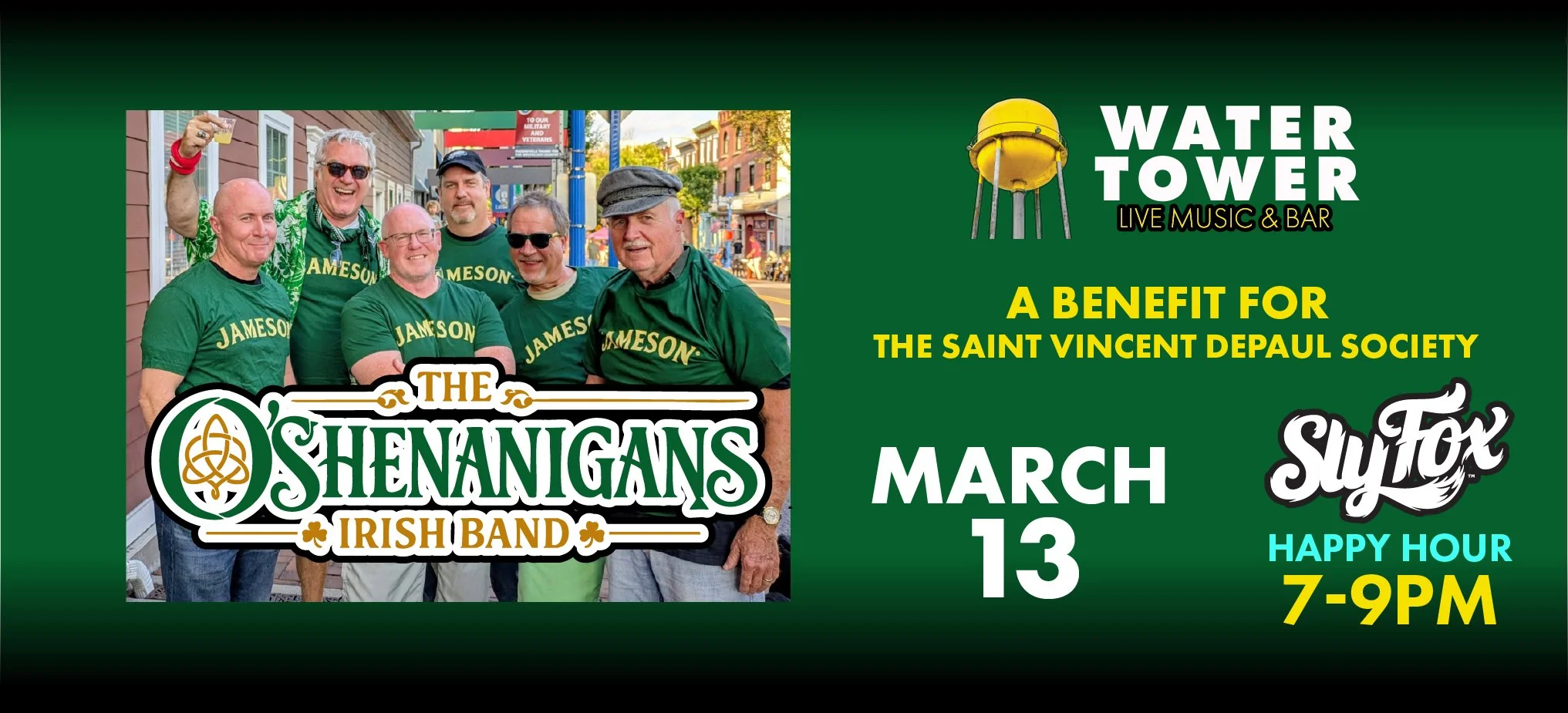 Enjoy Sly Fox Beer Happy Hour from 7:00 PM – 9:00 PM before and during the show.