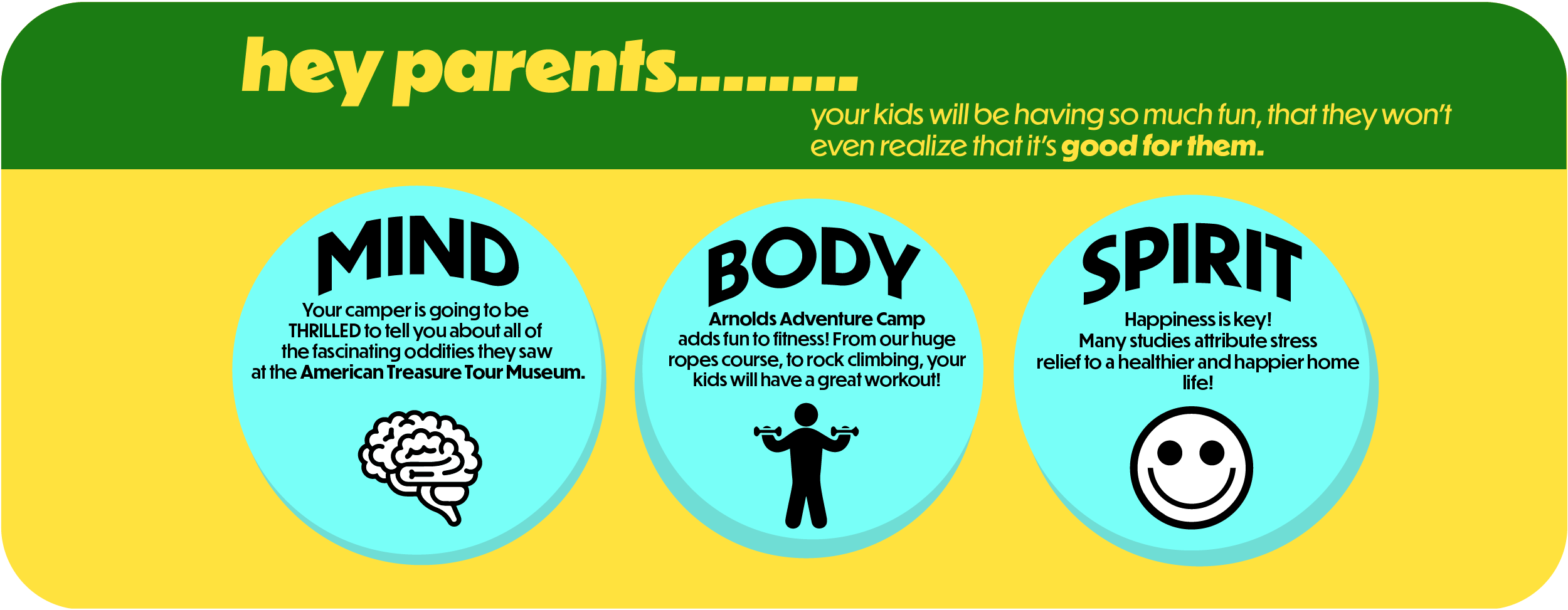 In order for parents to get a glimpse of the fun we have been having all week, Parents are invited to a party on Friday afternoons at 2pm to play at Arnold’s with their campers! Play cards for parent participants will be provided. We hope you will enjoy making memories of good times with your kids!