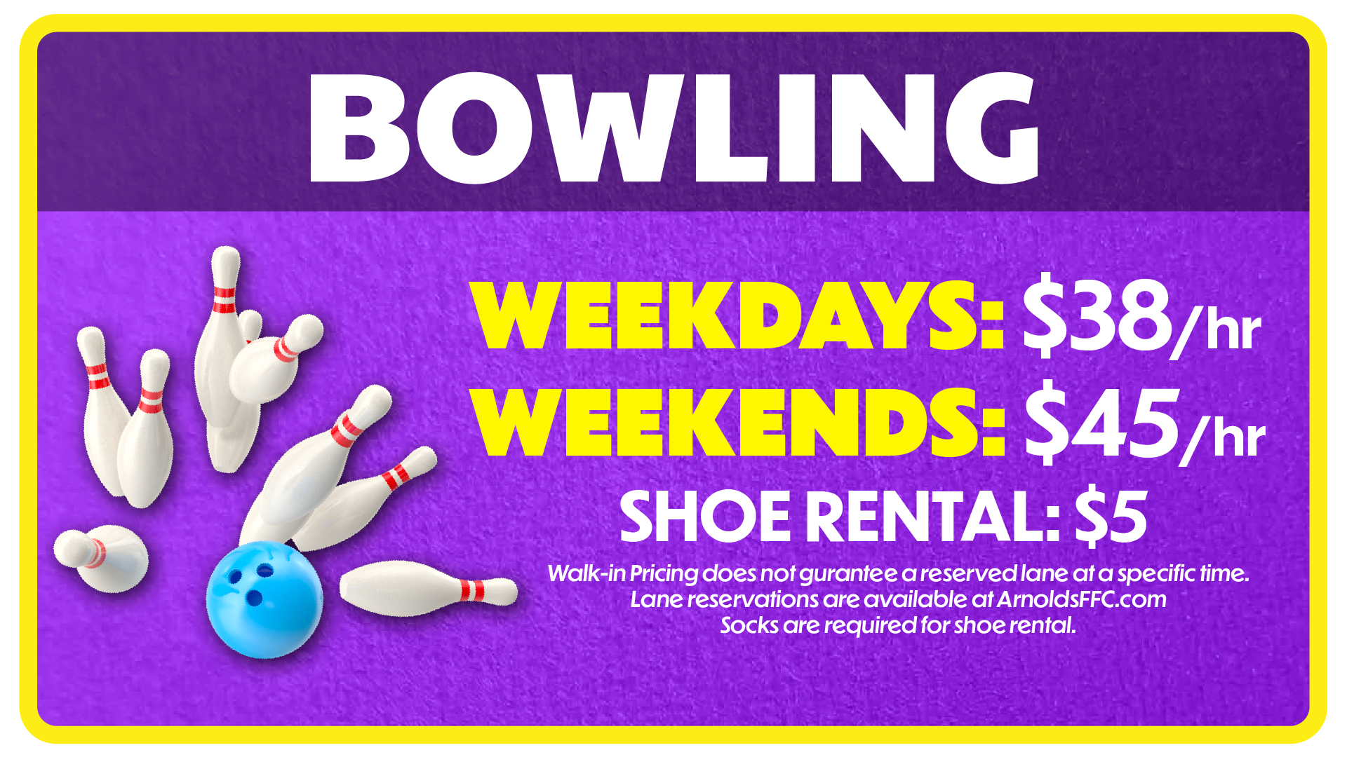 Arnold’s Private Banquet room starts at $150 per hour. Other areas are also available up to and including entire facility buyouts. Click here to send us an inquiry.