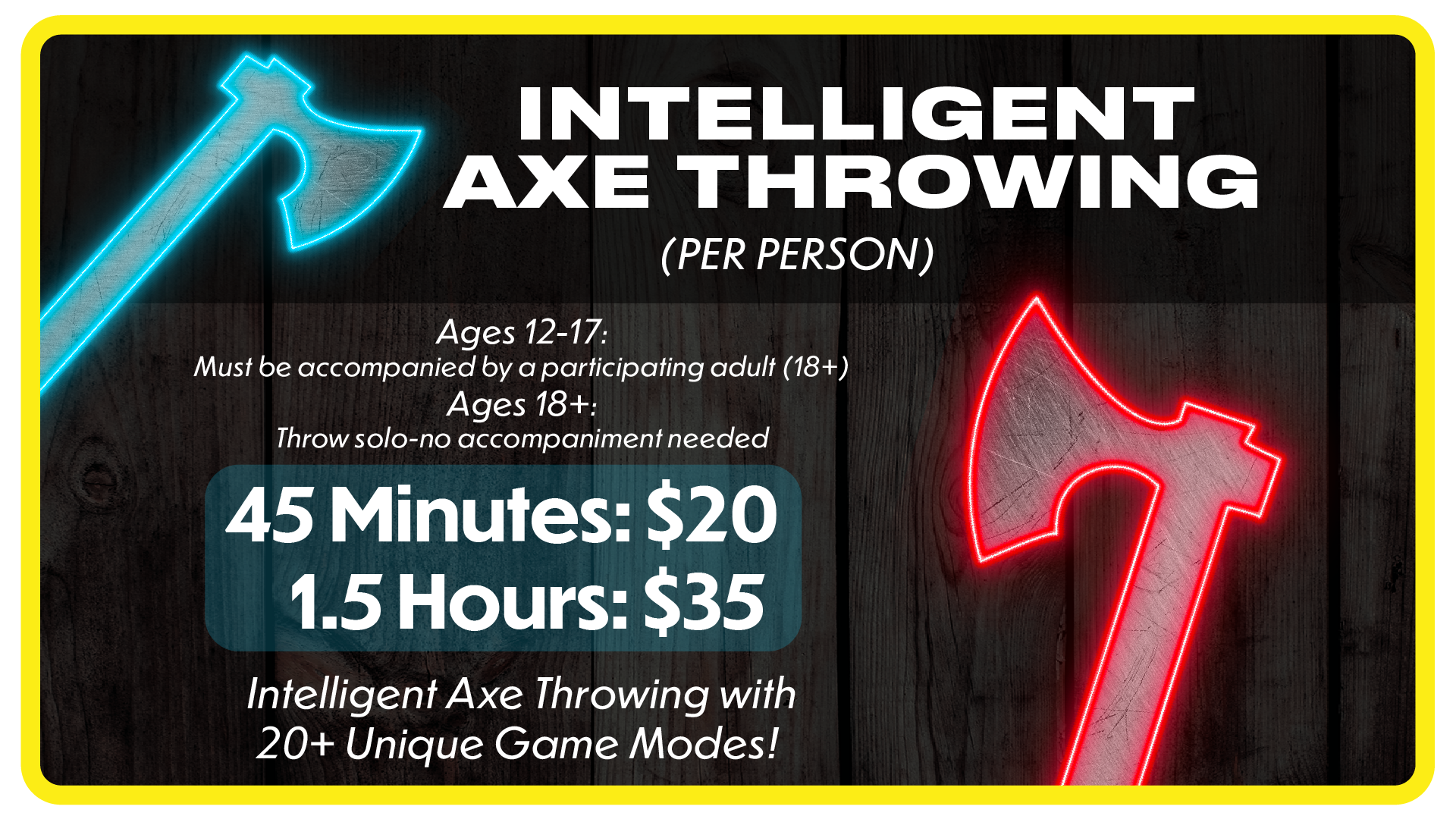 Celebrate in style by booking axe throwing or bowling. Or check out our party packages starting at $24.50 per paid guest with a minimum of 10 guests required. Click here to get in touch with a booking specialist or head over to our easy online booking portal.